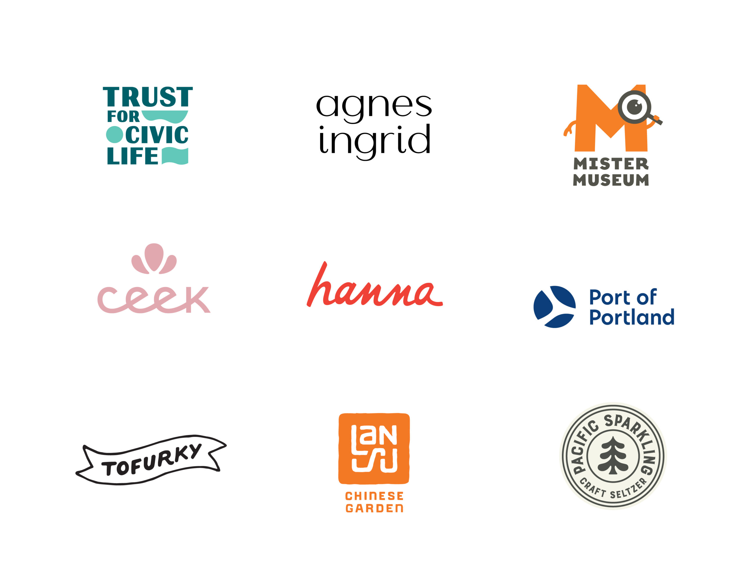 Tillamook, Lego, Umpqua Bank, Chronicle Books, Tofurky, Harry & David, Gelateria Naia, Nike, adidas, Hanna Andersson, Energy Trust of Oregon, Perfect Blends, Olympia Provisions, Oregon Humanities, Oregon Fruit Company, Trust for Civic Life, Port of Portland, Lan Su Chinese Garden, Oregon State Parks, Solmate Socks, Keen, Ninkasi, MacTarnahan Brewing, Pacific Sparkling Seltzer, Ruby Receptionists, Well Vegan, Gather Federal Credit Union