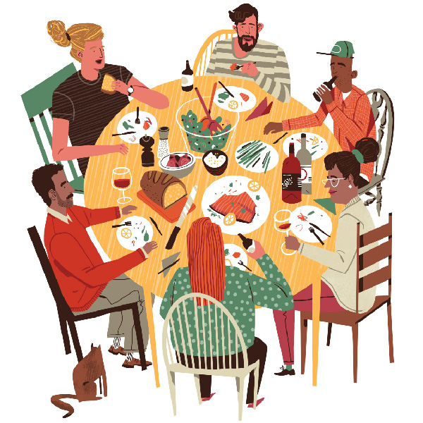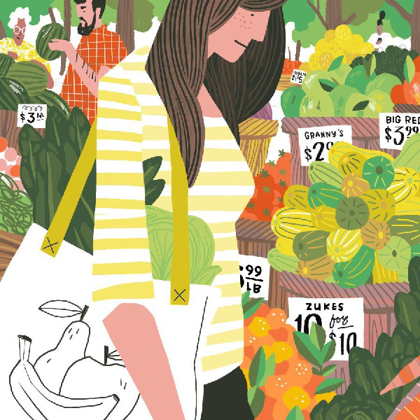 My name is Drew. I’m an editorial and commercial illustrator. I create illustrations for brands and publications, bringing stories and ideas to life with vibrant artwork. I draw colorful scenes of people and food that are alive with details. My art style is flattened realism, comprised of bold shapes and expressive, artful textures.